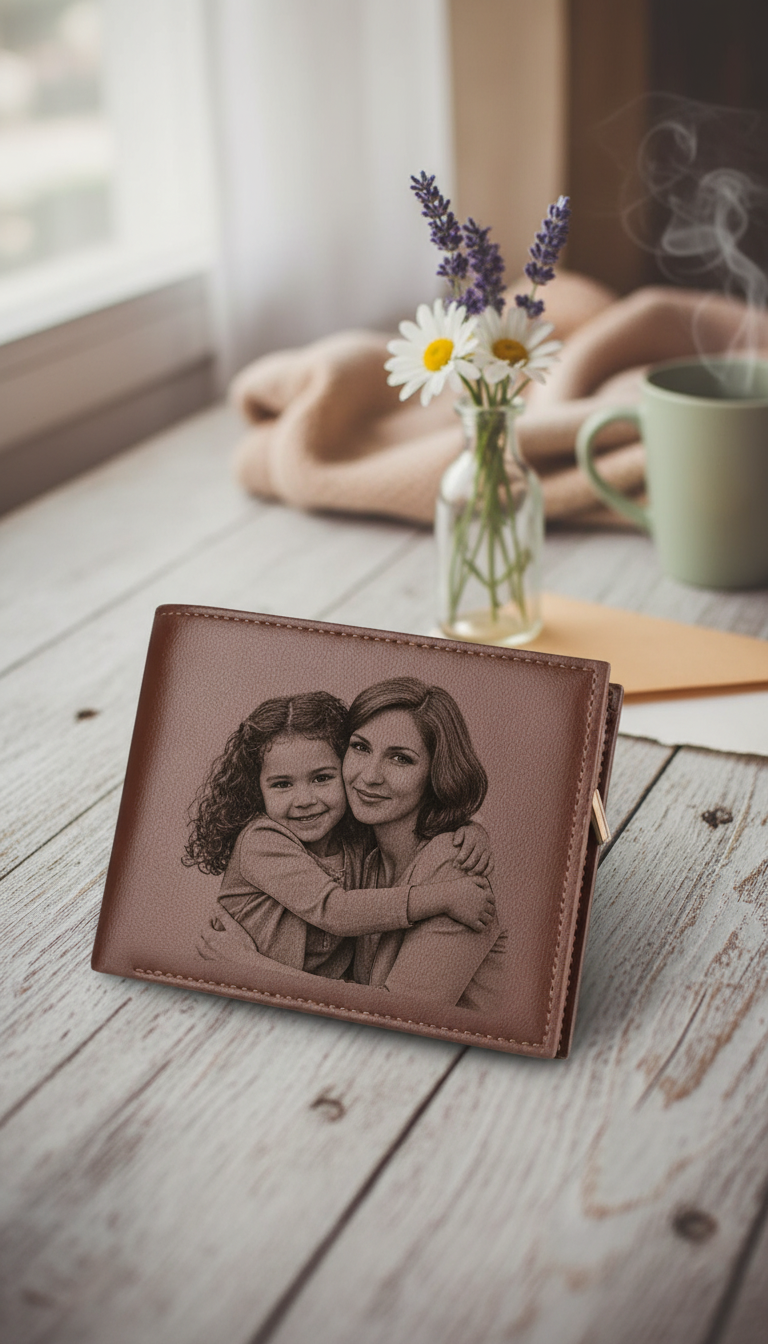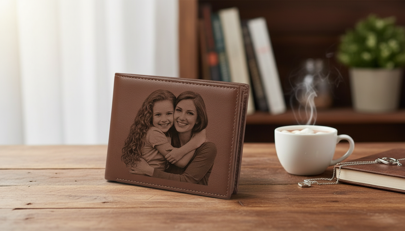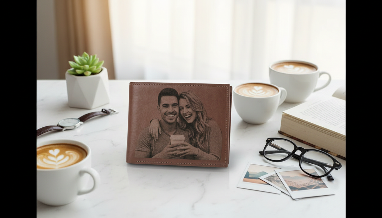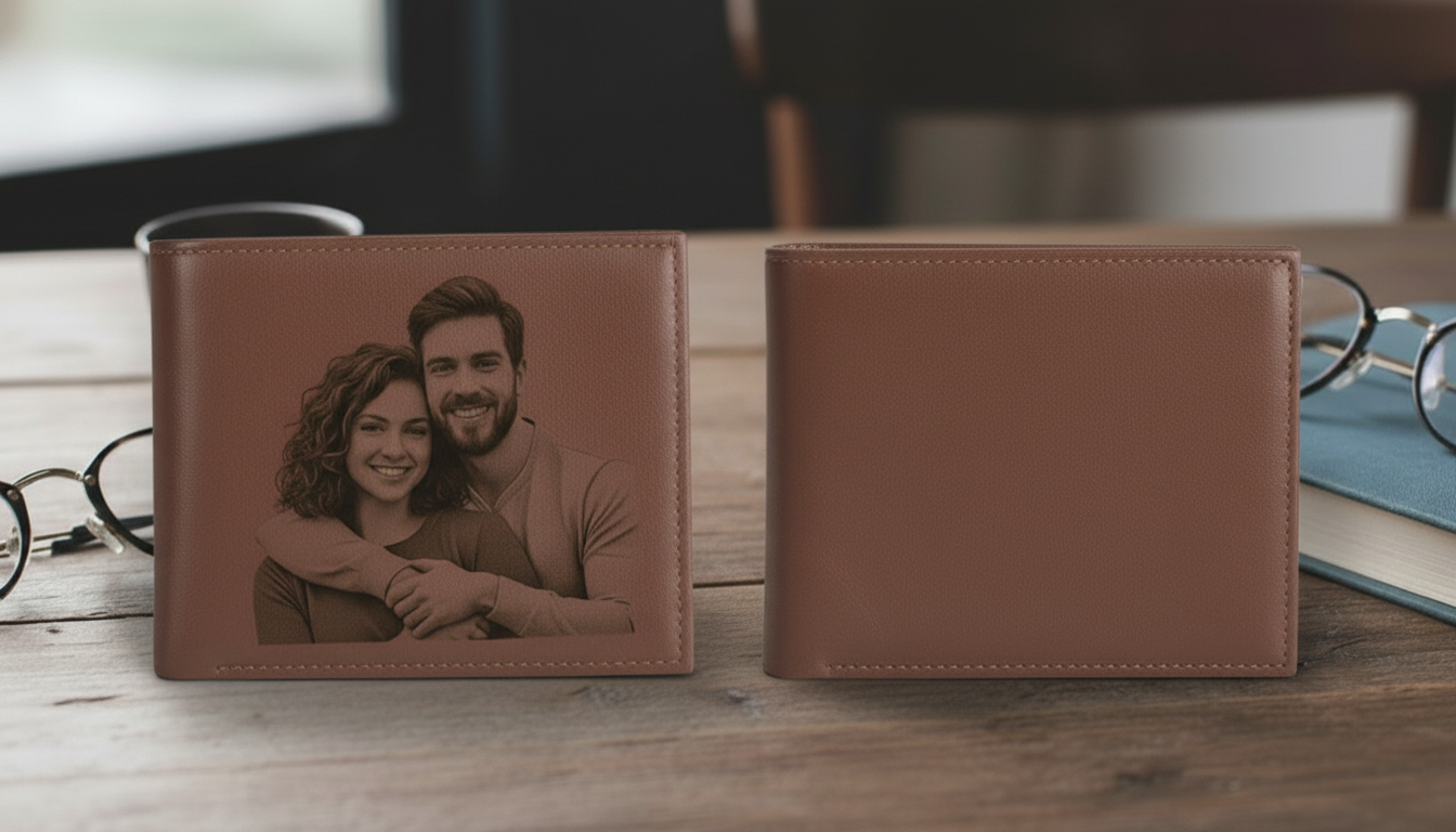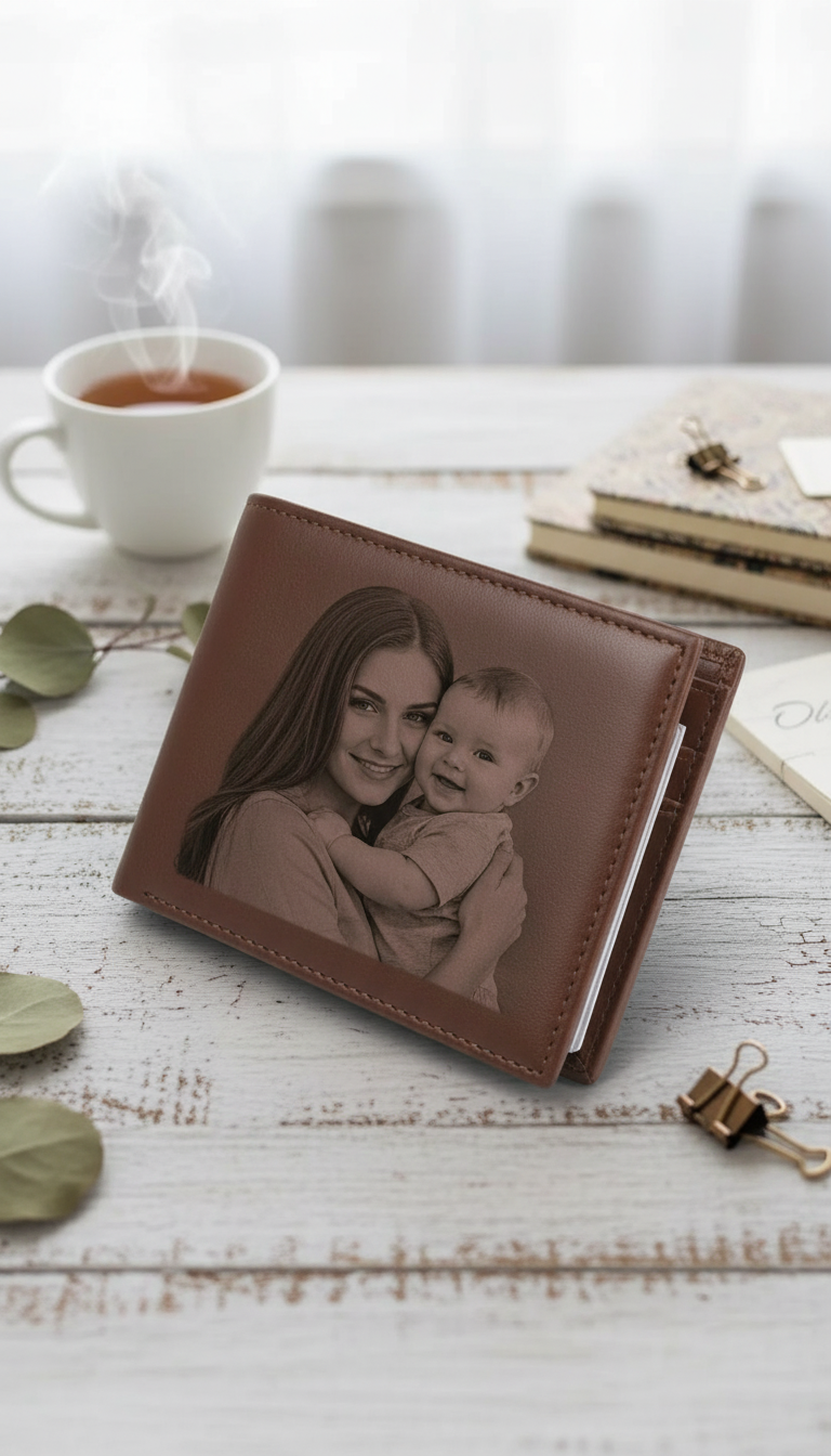 Un portefeuille en cuir véritable gravé avec votre photo préférée. Design ultra-fin élégant qui transforme l'ordinaire en extraordinaire.